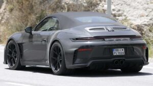 Первым элементом, который выдает идентичность нового Speedster, является задний бампер, который имеет те же центрально установленные двойные трубы, что и GT3. Это говорит о том, что под уникальной крышкой двигателя находится 4,0-литровый двигатель с плоской шестеркой, который естественным образом всасывается и подключается к семиступенчатой двойной сцепке или шестиступенчатой ручной коробке передач. Эти коробки передач также уникальны для моделей GT3 и его производных.
