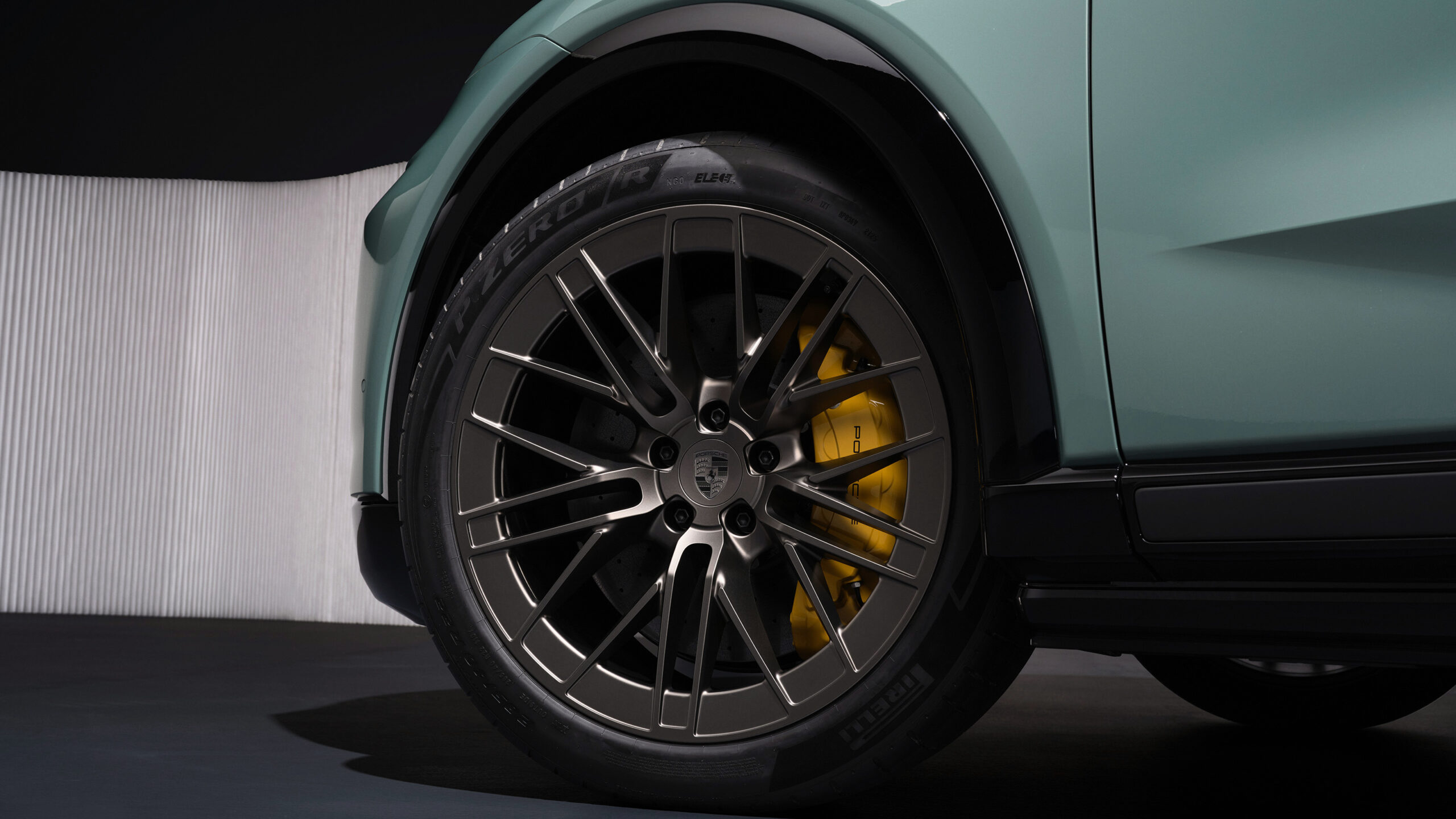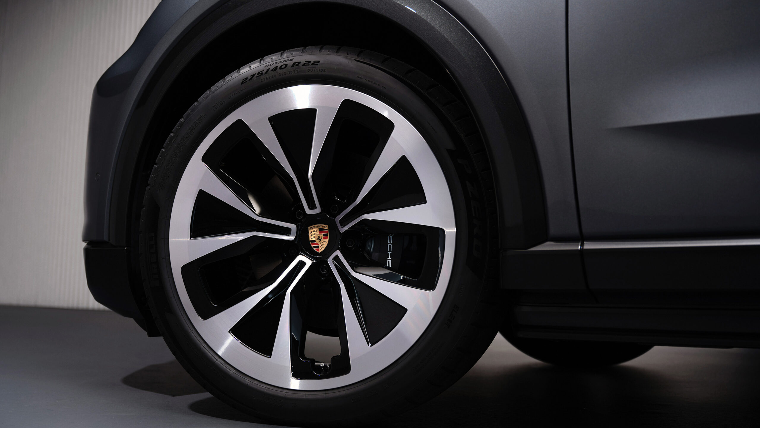 Отличительными особенностями являются безрамные двери, двуцветный кузов, диапазон аэрооптимизированных колес от 20 до 22 дюймов, 13 стандартных цветов внешней краски и адаптивная аэродинамика внутри носа и кровельного спойлера. Если говорить об аэродинамике, то коэффициент сопротивления Cayenne Electric составляет 0,25 — на целых 0,1 лучше, чем у бензинового автомобиля.