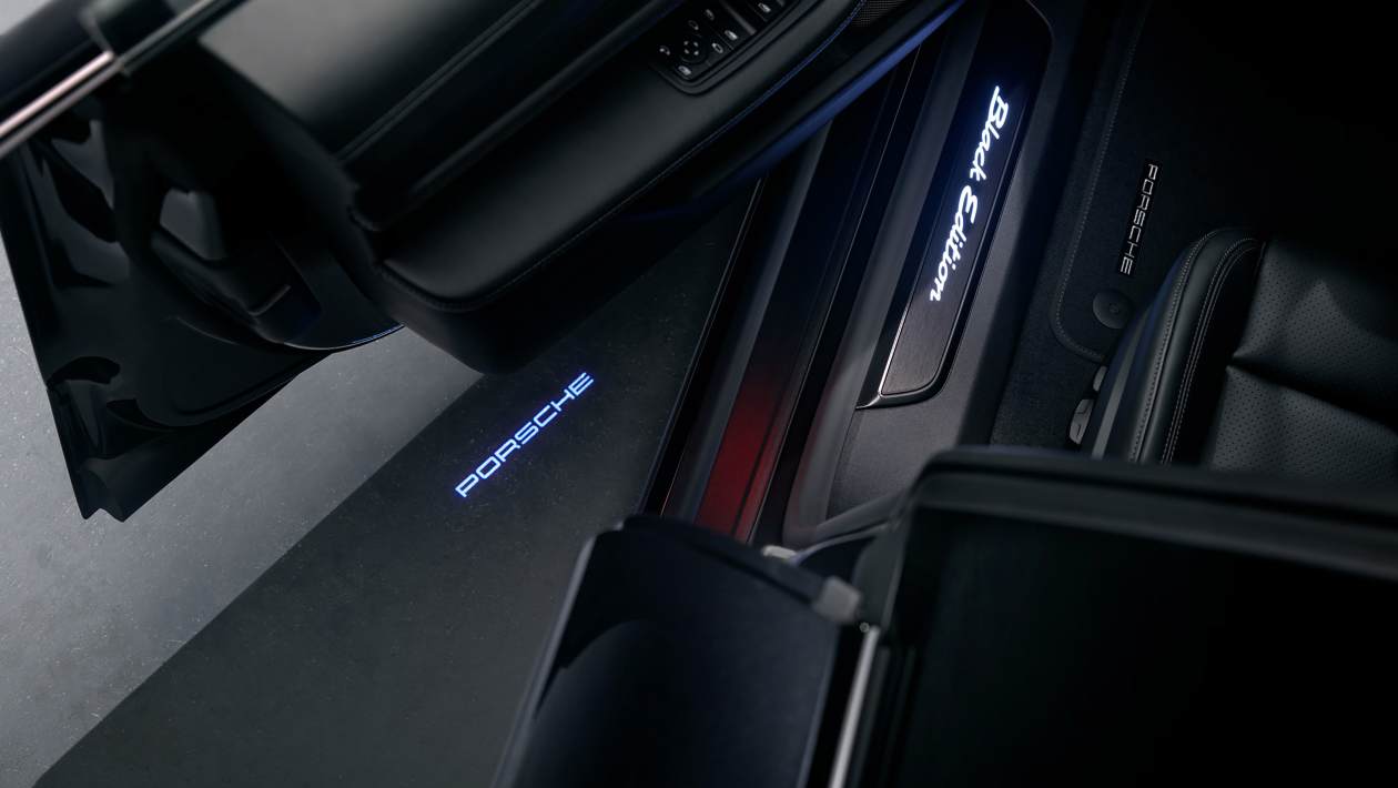 Конечно, как и ожидается от Porsche, варианты персонализации выходят намного дальше.Компания также предложит специальный пакет Black Edition, который включает черные надписи на передних дверях, а также освещенные защитные щиты и персонализированный набор ключей автомобиля.