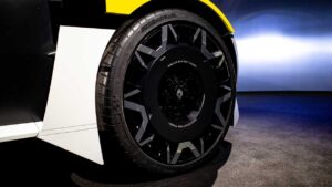 Красивые расширенные колесные шины являются знаковой частью оригинального R5 Turbo, поэтому, конечно, были перенесены на новую модель. Они еще больше на этот раз, не только для того, чтобы сделать Turbo 3E выглядеть как можно мельче или шире некоторых суперкаров, но и потому, что инженерам нужно было достаточно места для размещения электродвигателей на заднем колесе.