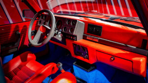 Видал сказал нам: Мы могли бы пойти более жестко с интерьером и просто иметь несколько игл и это все. Но мы сказали нет, мы все еще должны иметь подключение и несколько функций там, особенно если люди собираются на самом деле водить автомобиль на трассу, а не просто поставить его на трейлер.