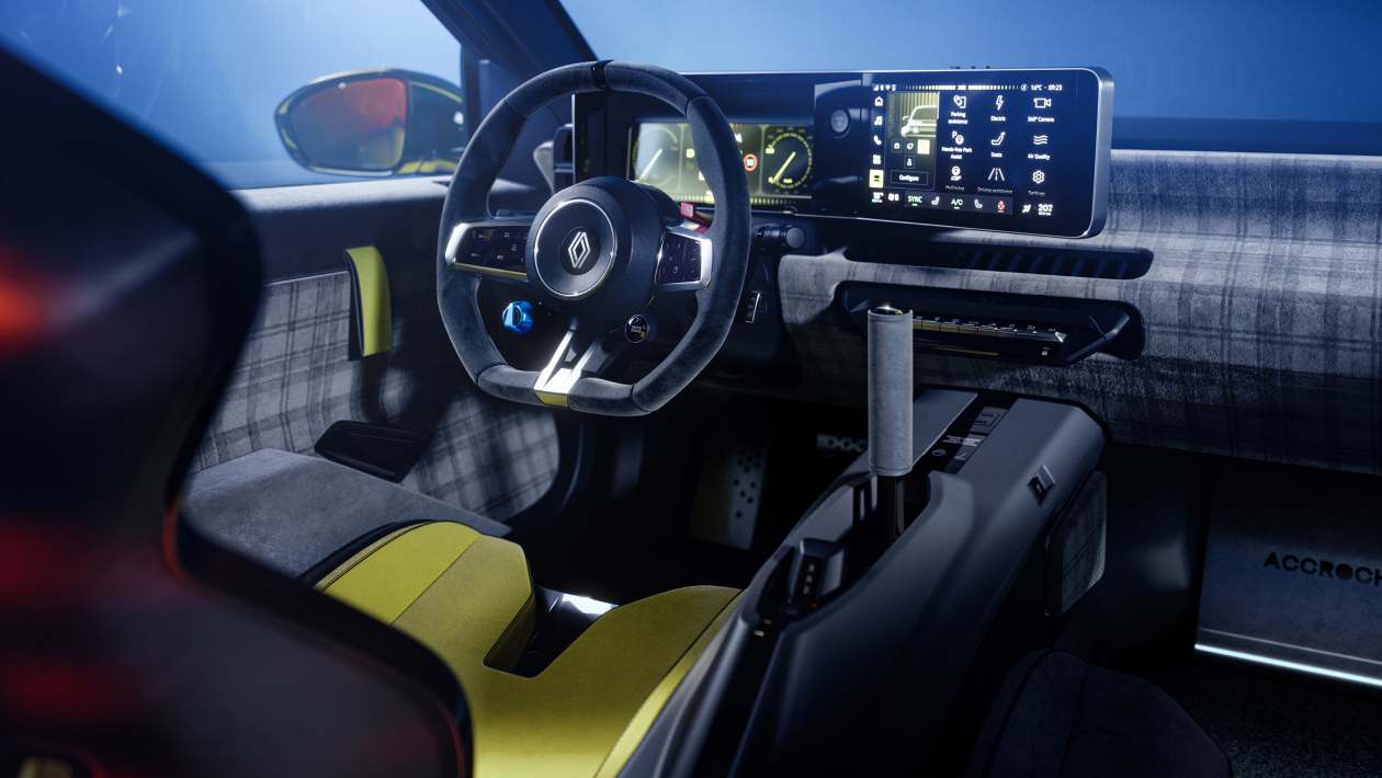 На случай, если вы не слышали, да, Turbo 3E — это электромобиль, но он придерживается той же радикальной формулы, что и старый Renault 5 Turbo, выросший на ралли, и позднее Turbo 2, вставляя чрезвычайно мощную силовую установку с задним приводом в пакет меньше, чем VW Golf, спортивный безумный кузов и столь же возмутительный интерьер.