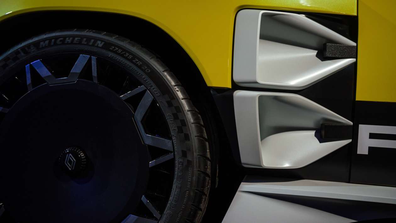 Красивые расширенные колесные шины являются знаковой частью оригинального R5 Turbo, поэтому, конечно, были перенесены на новую модель. Они еще больше на этот раз, не только для того, чтобы сделать Turbo 3E выглядеть как можно мельче или шире некоторых суперкаров, но и потому, что инженерам нужно было достаточно места для размещения электродвигателей на заднем колесе.