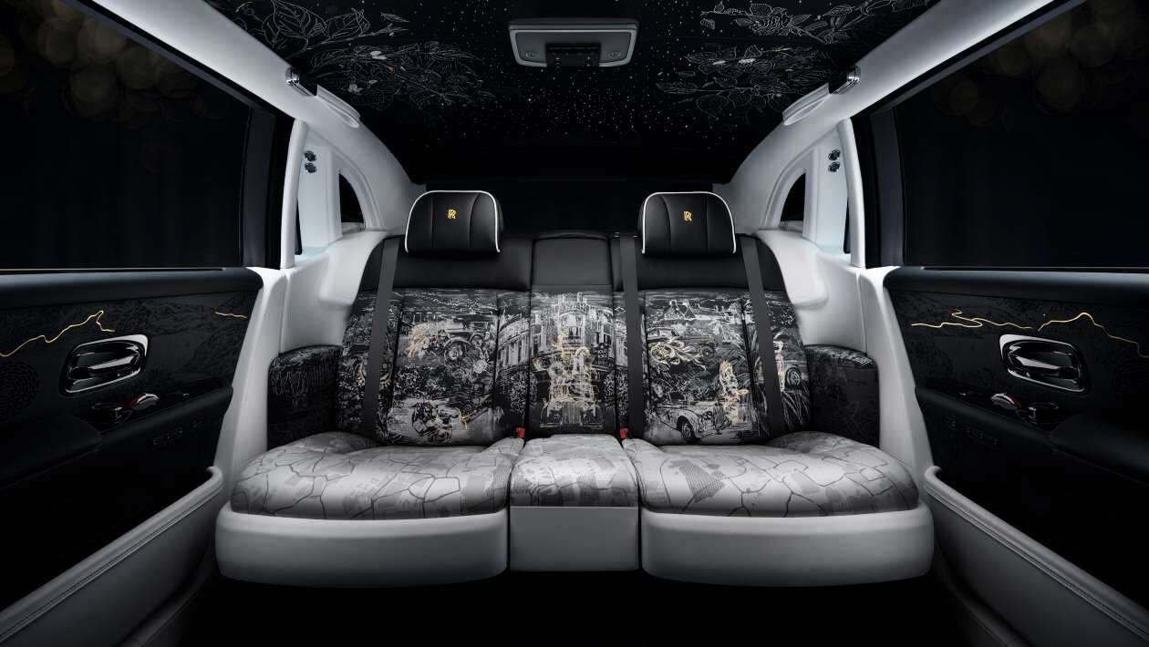 Например, задние сиденья оснащены уникальной напечатанной тканью, в то время как на задней скамейке есть 160 000 вышитых швов. На передних сиденьях есть лазерно выгравированная кожа с еще большим количеством рисунков, а цвета меняются от белого до черного, когда вы поднимаетесь на каждое из стульев.