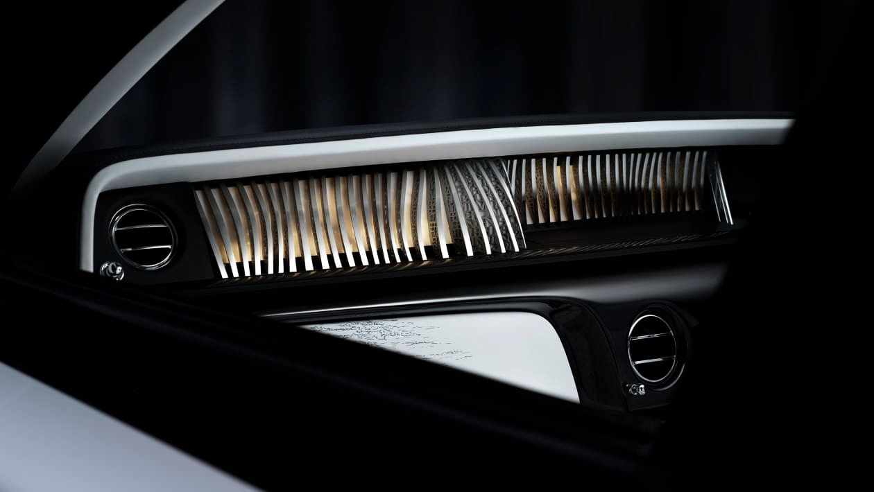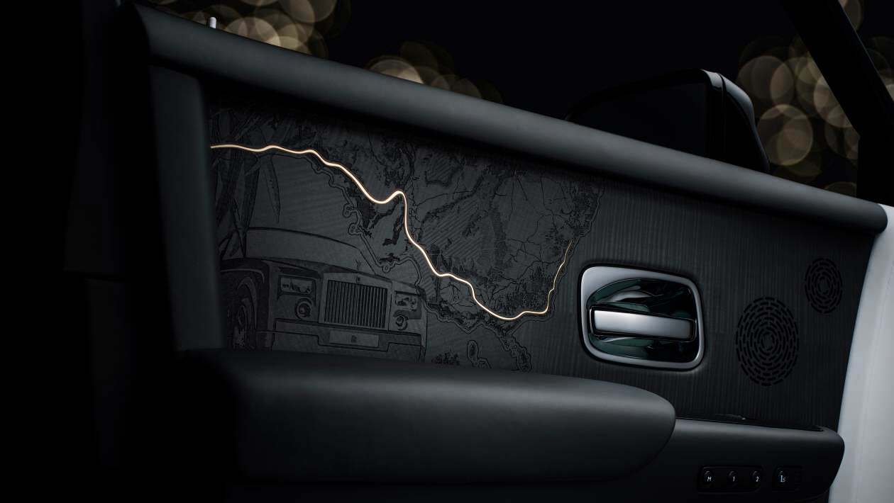 Экспертиза Rolls-Royce в деревянной маркировке также представлена, с невероятными сценами, изображенными на черных деревянных панелях через двери и подносные столы, которые построены с помощью трехмерного маркировки нового века, а также слоя чернил и даже позолоты в золоте.