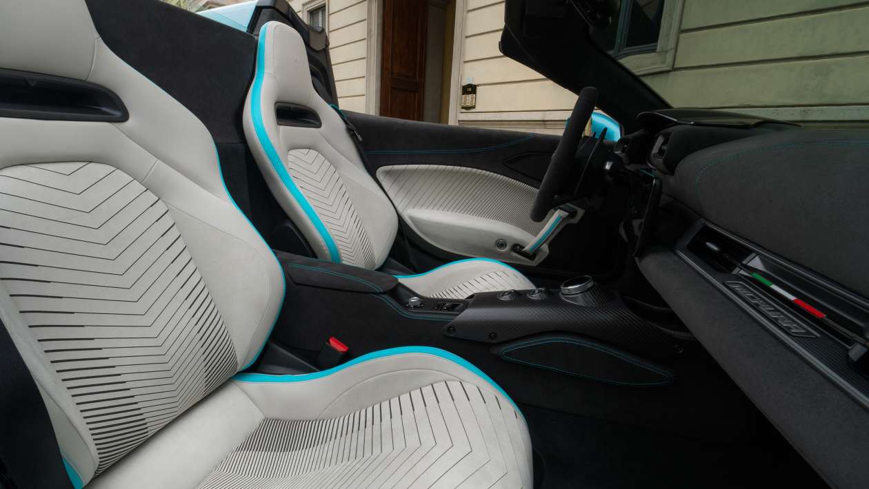 Открытие дверей-бабочек автомобиля покажет тот же дизайн интерьера, что и раньше, который, как известно, включает 10,25-дюймовый сенсорный экран от Fiat 500, однако для MCPura большинство поверхностей теперь покрыты алькантарой, чтобы подчеркнуть спортивность автомобиля.