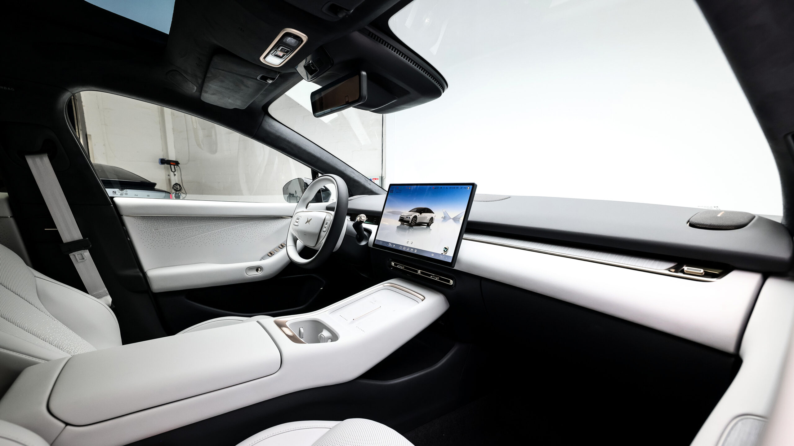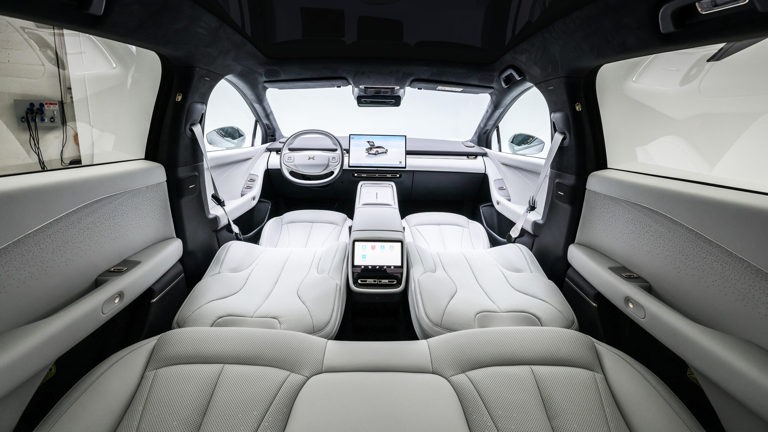 В интерьере доминирует широкая центральная консоль с двумя беспроводными зарядными колодцами, 15,6-дюймовым информационно-развлекательным дисплеем, 8,8-дюймой цифровой приборной панелью и первым использованием XPeng’s головного дисплея. Он предлагает сочетание окружающего освещения и премиальных материалов, включая режим медитации и режим сна, а также личного помощника с ИИ.
