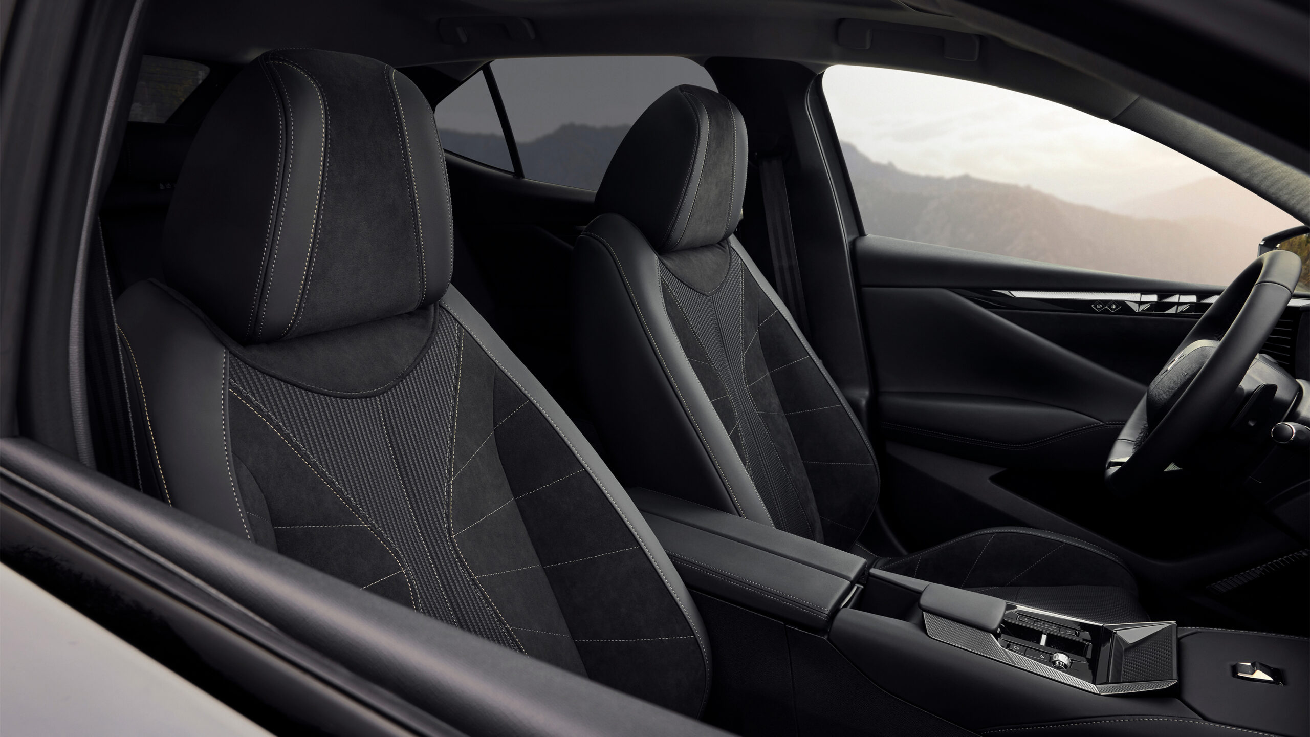 Чтобы помочь дифференцировать линию DS Performance Line от отделки Pallas и Etoile, они получают атласное золото и блестящие черные особенности, такие как эмблема, надпись, зеркальные крышки и колеса. Интерьер обшит в Alcantara и получает золотые швы на заказ на сиденьях.