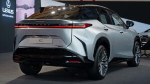 RZ получает те же обновления силовой установки, которые мы уже видели на сестринском автомобиле Toyota bZ4X, что означает новый аккумулятор и электродвигатель, обеспечивающие большую мощность.