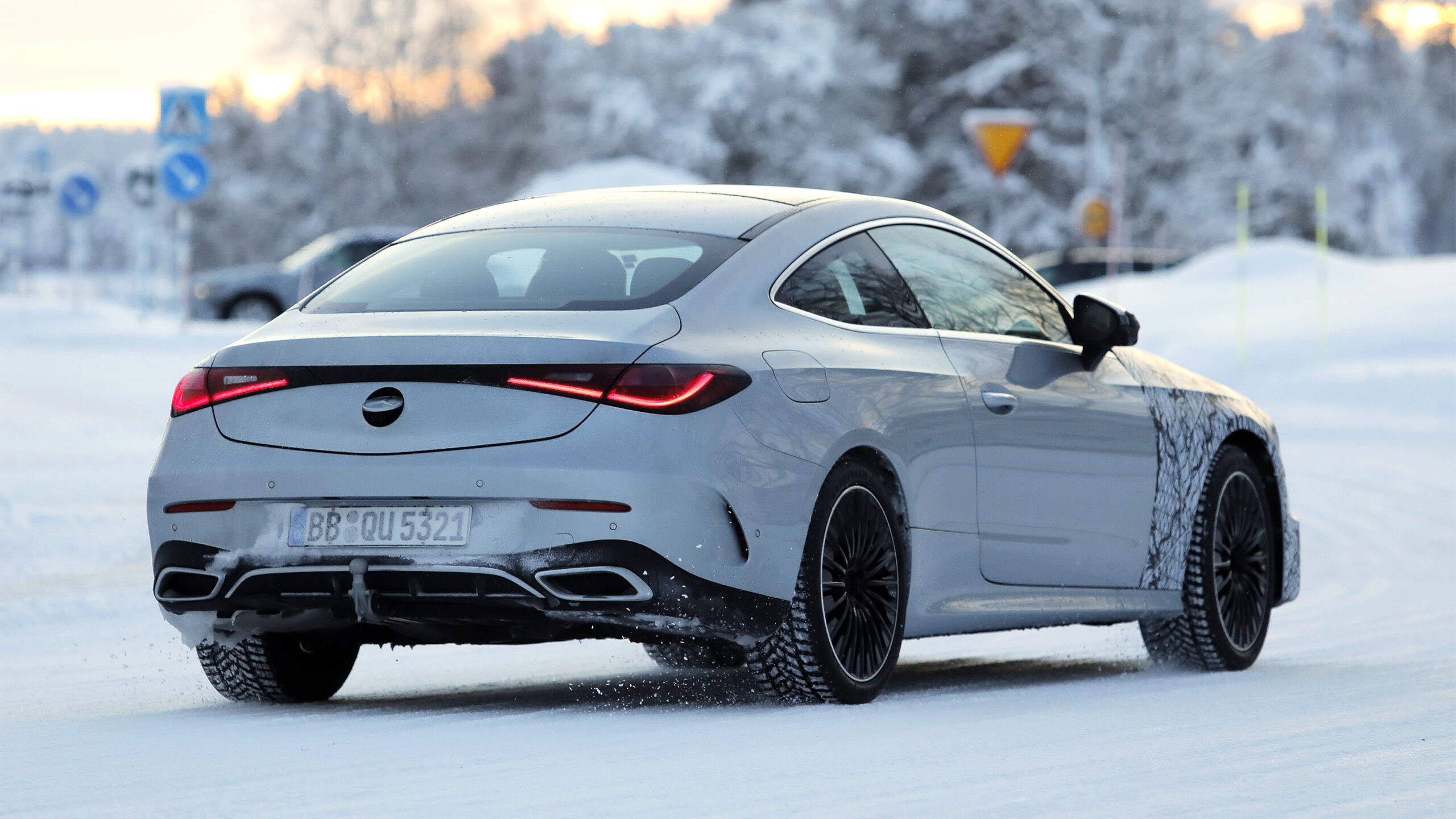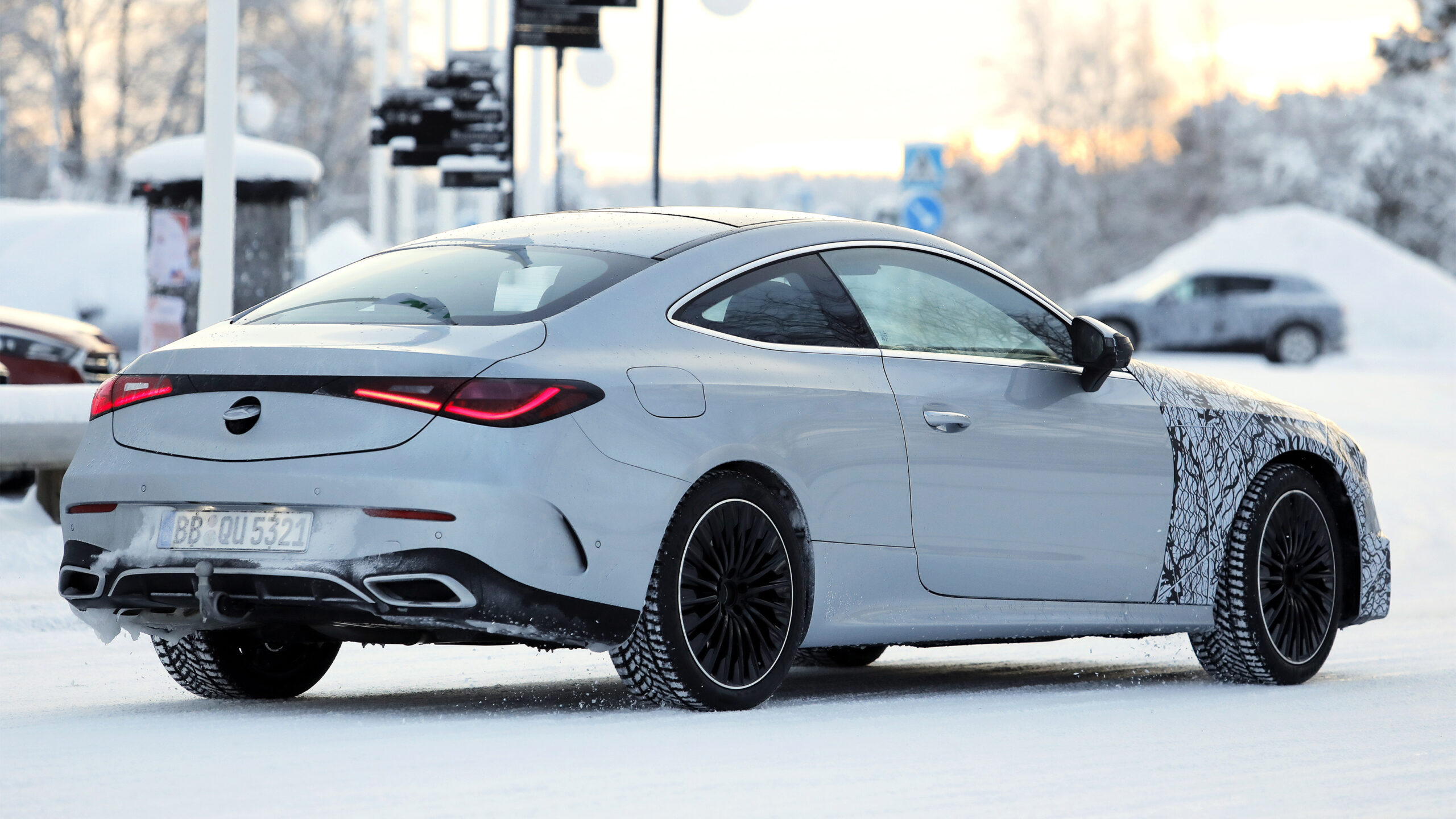 Mercedes готовит обновление среднего возраста для еще одной из своих моделей. купе CLE и его кабриолетный брат должны получить несколько новых дизайнерских безделушек в конце 2026 года или в начале 2027 года. Несмотря на то, что тест-кар, который мы наблюдали, имеет полностью покрытый нос, наши новые изображения действительно показывают некоторые довольно серьезные изменения, скрывающиеся под обшивкой.
