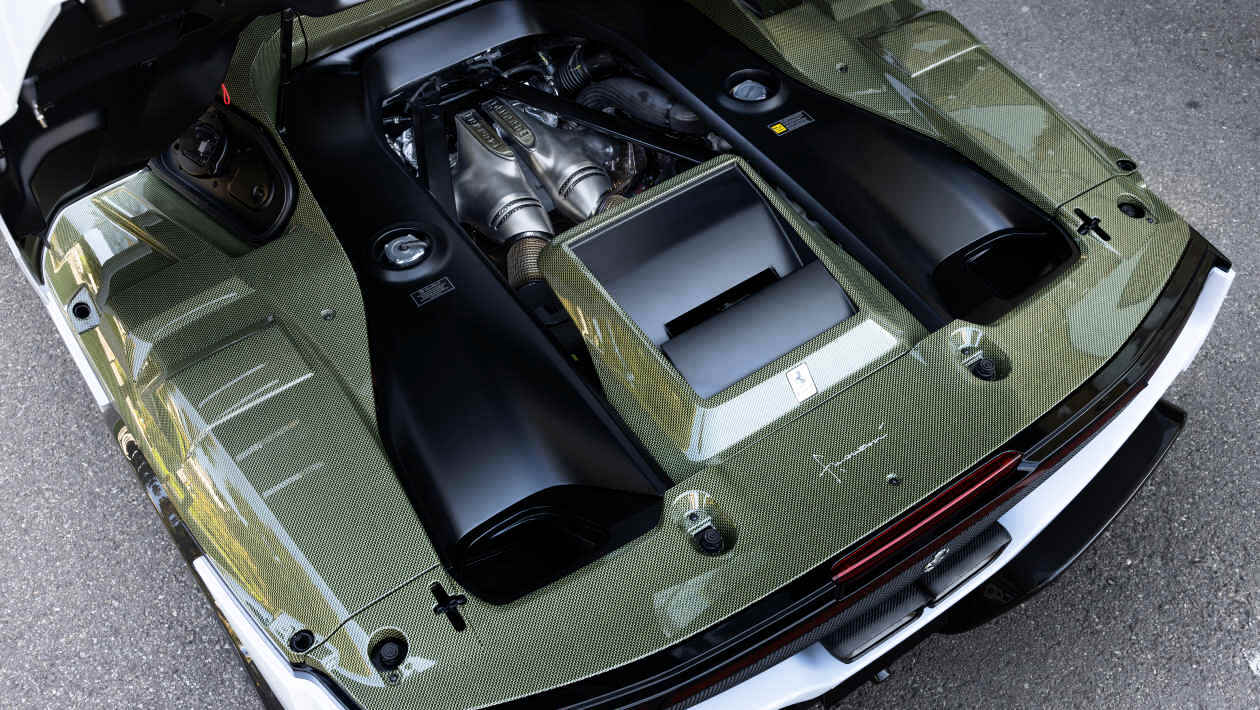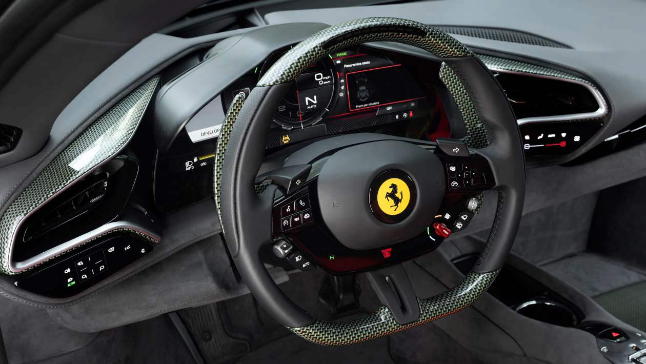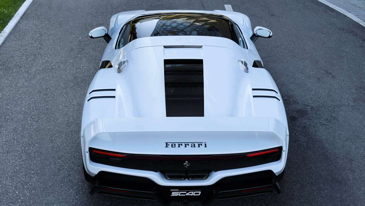 Под задней клапанной оболочкой находится тот же гибридный силовой агрегат, что и в 296GTB, который состоит из 120-градусного двигателя V6 с двумя турбокомпрессорами. к этому затем монтируется небольшой электродвигатель, с восьмиступенчатой коробкой передач, расположенной позади. пиковая мощность оценивается в 818 л.с., с максимальным крутящим моментом 740Нм. ускорение также оценивается так же, как и в стандартном серийном автомобиле, SC40 достигает 62 миль в час за 2,9 секунды и достигает максимальной скорости более 202 миль в минуту.