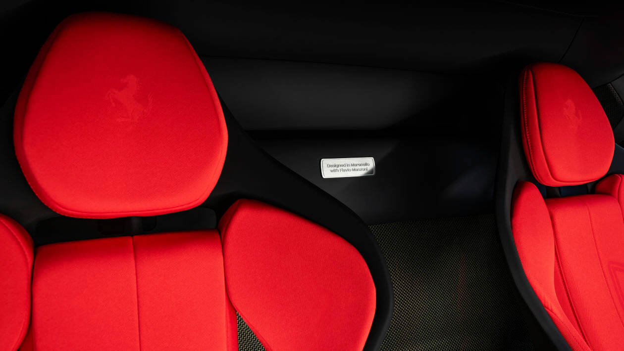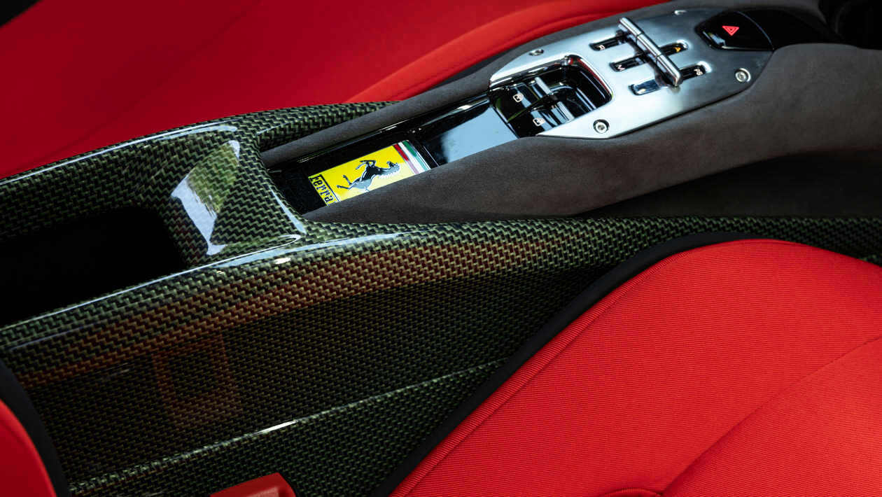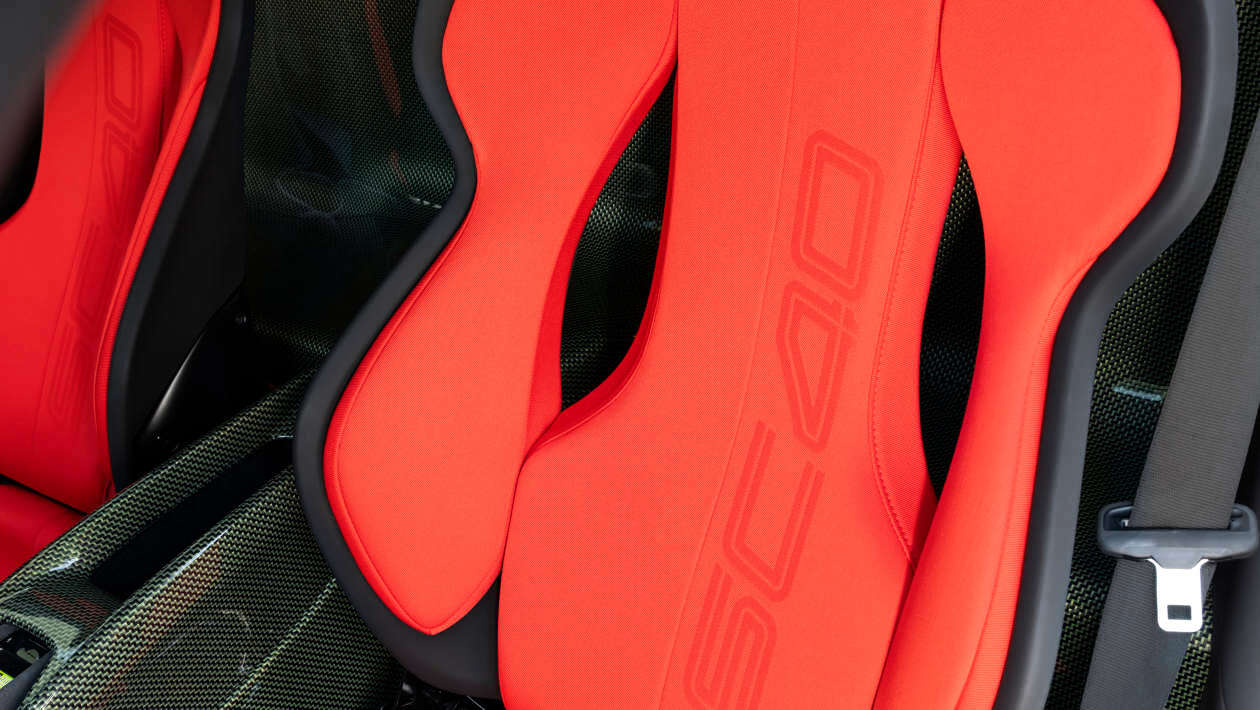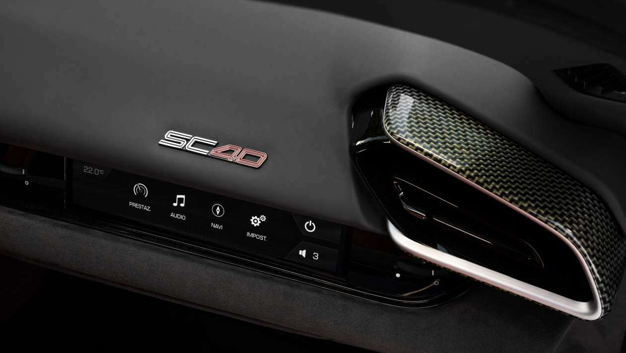 Внутри SC40 переносит существующий интерьер 296 GTB, но элементы цвета и отделки берут непосредственное вдохновение у Ferrari F40 Это включает в себя отделку из углеродного волокна, которая имеет слегка зеленый оттенок, как выглядел ранний углеродный кевлар Ferrari, предшественник современного углеродового волокна в 1980-х годах На самом деле этот углерод распространяется по полу кабины и задней кабине, а также под задней раковиной, как это было на F40.