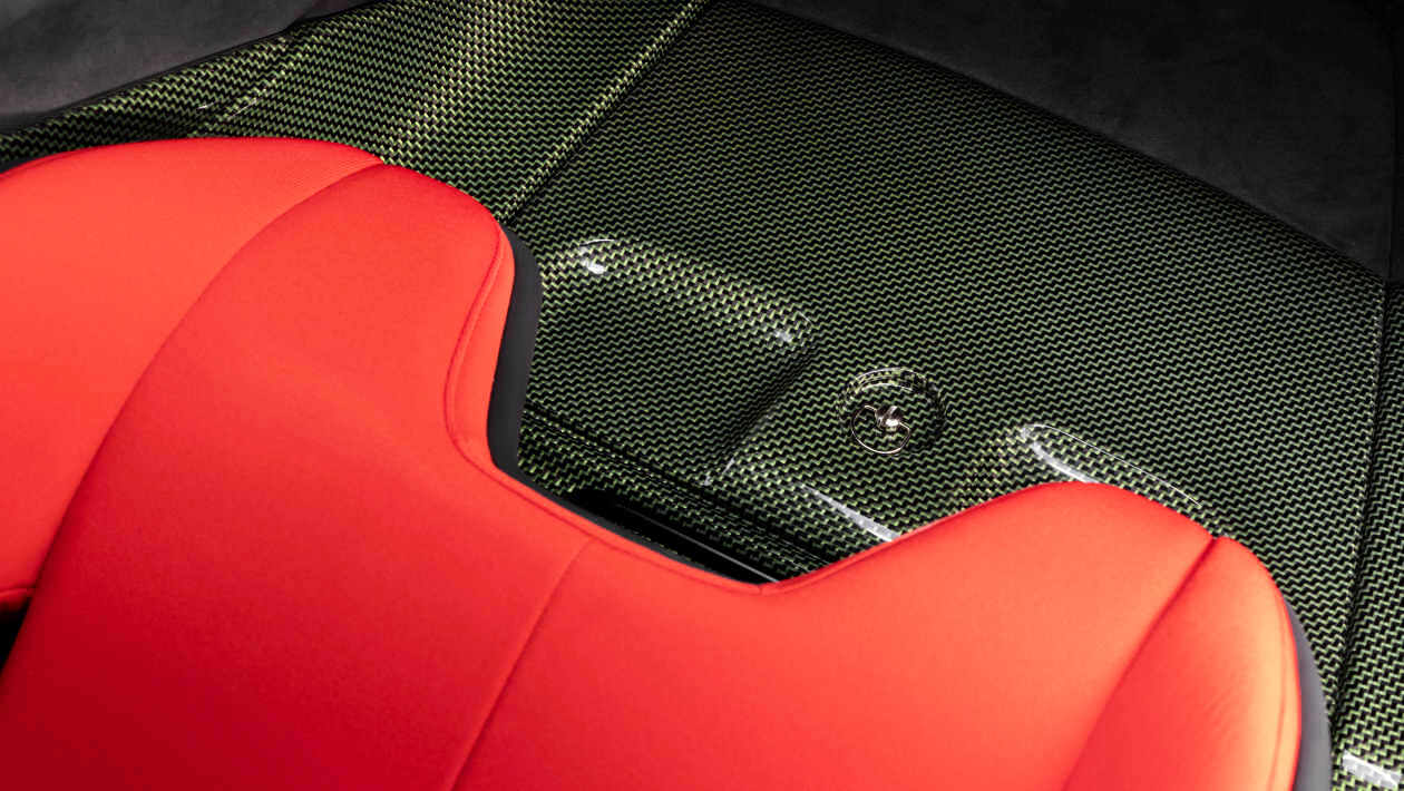 Заднее крыло обрамляет хвост, с полностью открытым задним концом, похожим на F40, помогая извлечь воздух из моторного отсека. Есть также более очевидный и агрессивный задний диффузор, чем можно было бы увидеть на автомобилях 1980-х годов. Задние фонари кажутся ограниченными крошечными красными полосками, но под ними находятся еще два небольших элемента для индикаторов и обратных фонарей.