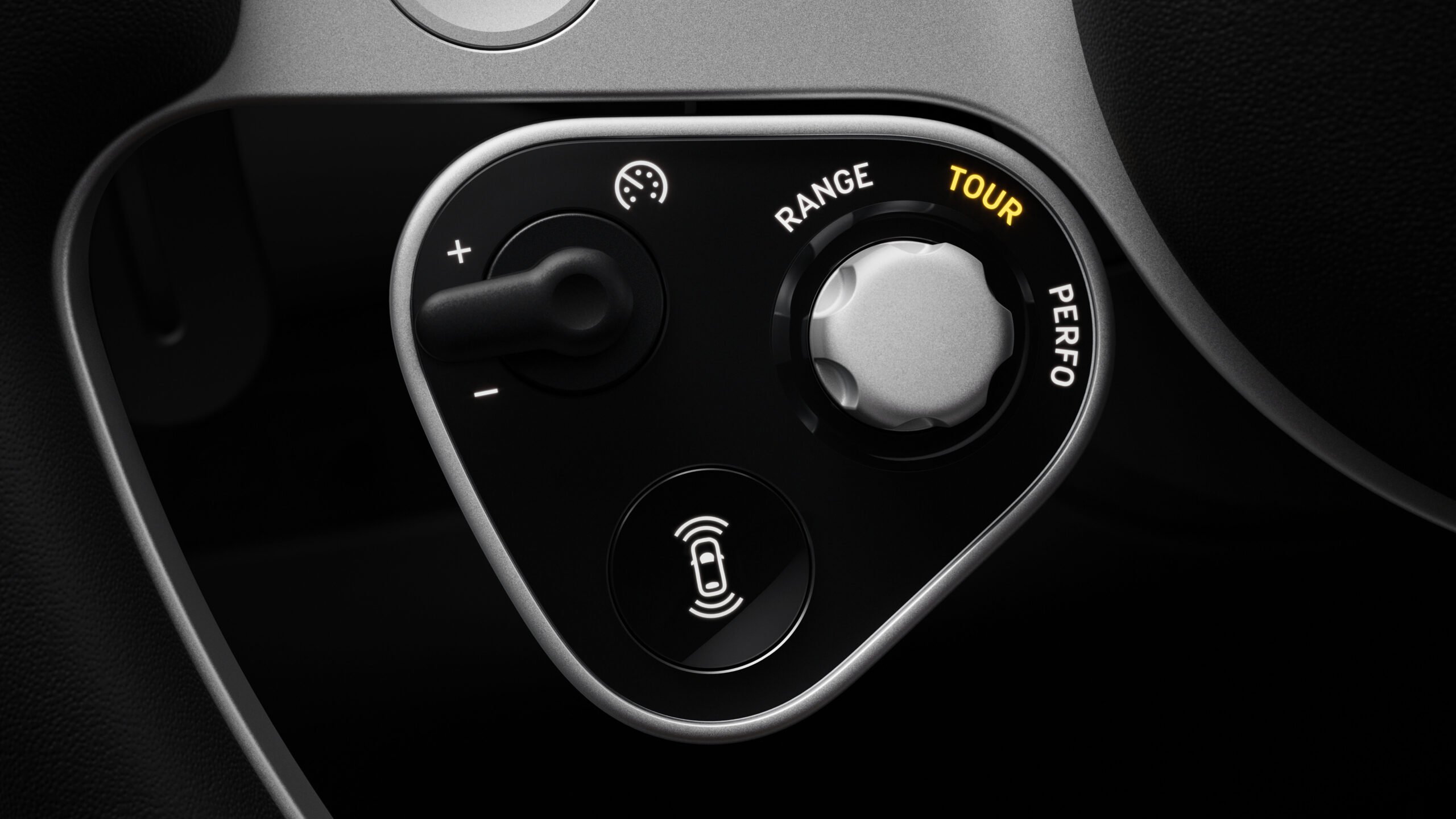 Нажав на правое рулевое колесо на рулевом колесе, водитель может активировать пять постепенно повышающихся уровней крутящего момента и подачи мощности, чтобы создать ощущение ускорения, аналогичное ощущению у бензинового Ferrari. Левое рулевое ведро используется аналогичным образом, чтобы воспроизвести ощущение торможения двигателя при замедлении движения в поворотах.