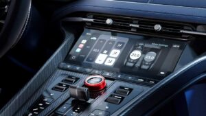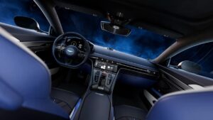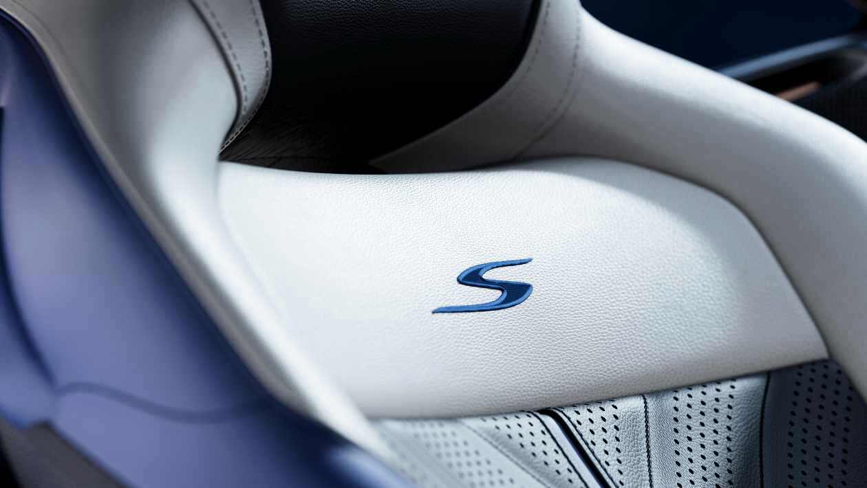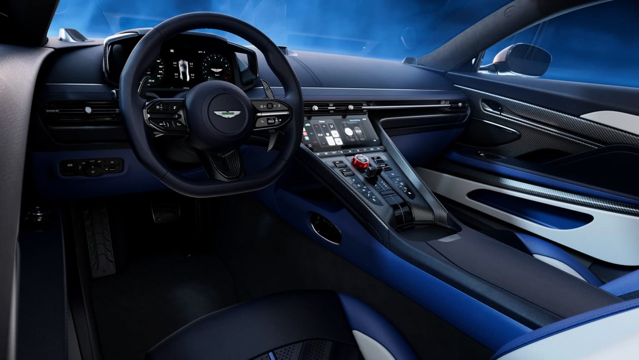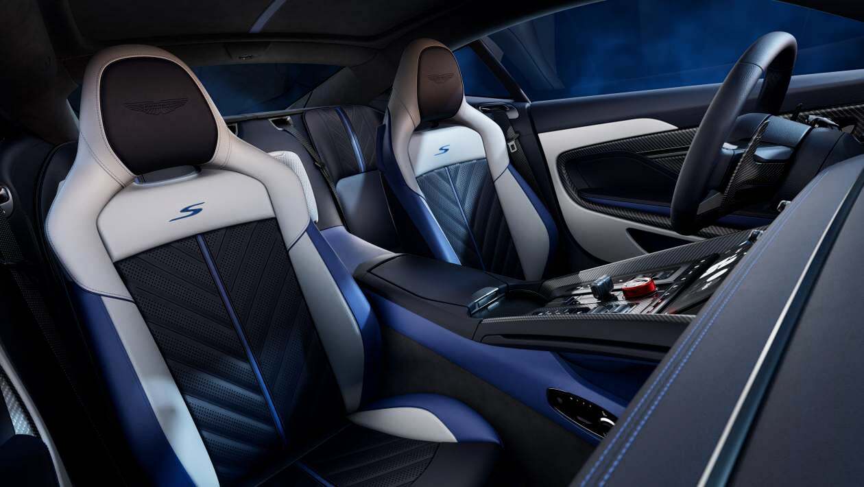 Внутри есть несколько отдельных элементов отделки и материалов, уникальных для S, в том числе переключатель режима движения в кроваво-красный цвет, но кабина в остальном знакома с DB12.