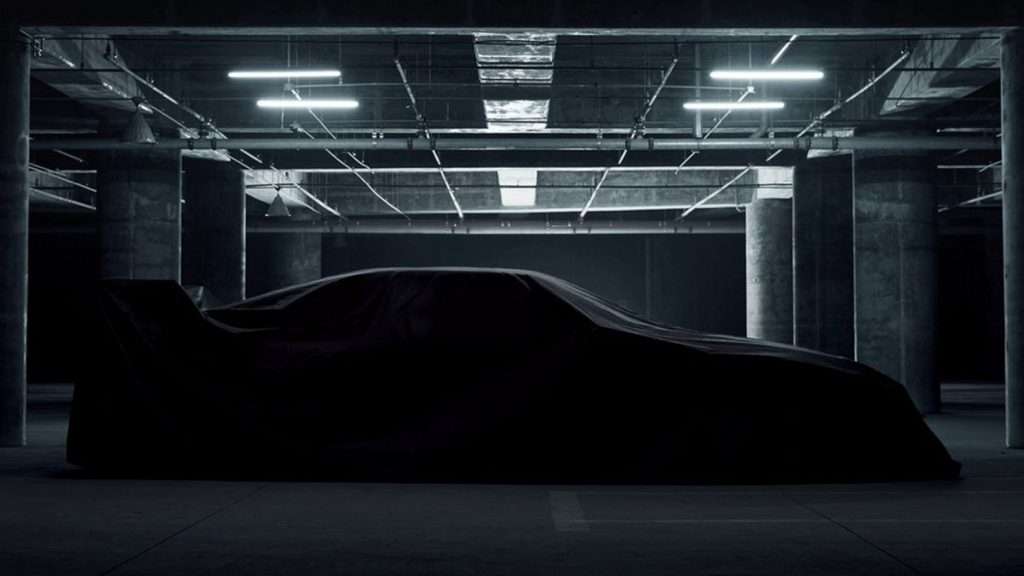 На изображении показаны очертания нового Hyundai, наиболее яркой деталью которого является огромный задний аэродинамический обтекатель. Боковой профиль выглядит почти как у Ferrari F40 с широкими стойками до верхней части спойлера и нижней линией крыши. Изображение сопровождает текст: «Наступает новая эра N, чтобы открыть новую главу удовольствия от вождения».