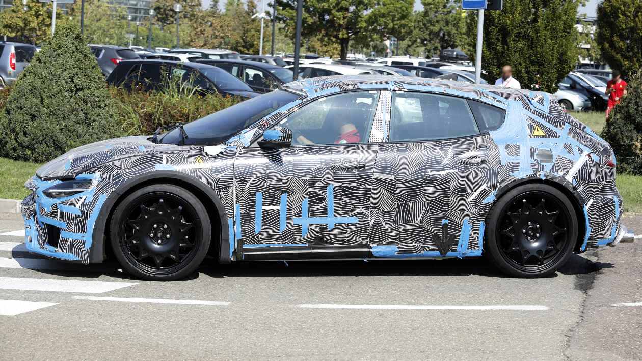 Прототипы Elettrica уже были замечены на испытаниях несколько раз, все они носили похожий камуфляж и демонстрировали некоторые кузовные панели, взятые из Maserati Levante. Тест-кары предоставили некоторые подсказки о дизайне, такие как расширенные передние крылья, которые имеют более упрощенный профиль, чем у Purosangue. Передний бампер демонстрирует открытый и агрессивный стиль и, предположительно, обеспечивает достаточный поток воздуха для охлаждения батареи и двигателей.