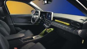 Цветовая тематика продолжается в салоне, где вы найдете черную кожу и обивку Alcantara, с золотыми швами, а также специальную золотую табличку на центральной консоли, на которой отображаются Re-volve и Monte Carlo.