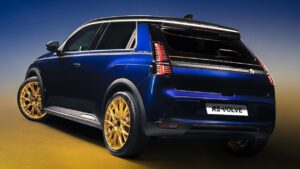 В то время как обычный Renault 5 EV полон дизайнерских штрихов, имитирующих оригинал, Monte Carlo Edition получает множество индивидуальных модификаций. В партнерстве с голландским автодилером Zeeuw & Zeeuw, Re-volve кузовный конструктор в Нидерландах добавил полуночную голубую окраску с контрастной черной крышей, а также золотую ливрею внутри решетки, которая течет по бокам и на задний люк, разделенную буквами Monte Carlo.