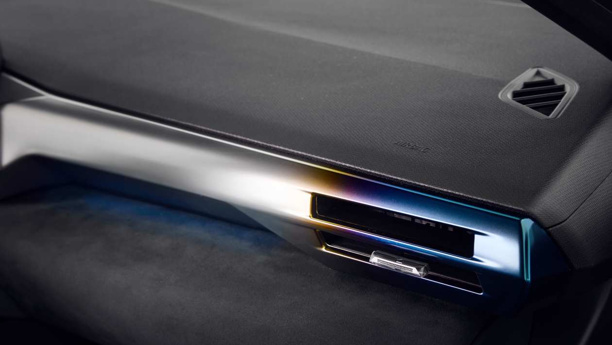 В верхней половине салона много мягких материалов, скульптурная ткань проходит через DashCoin и на дверную панель, где она встречается с кристаллическим эффектом освещения окружающей среды, что является особенным моментом.
