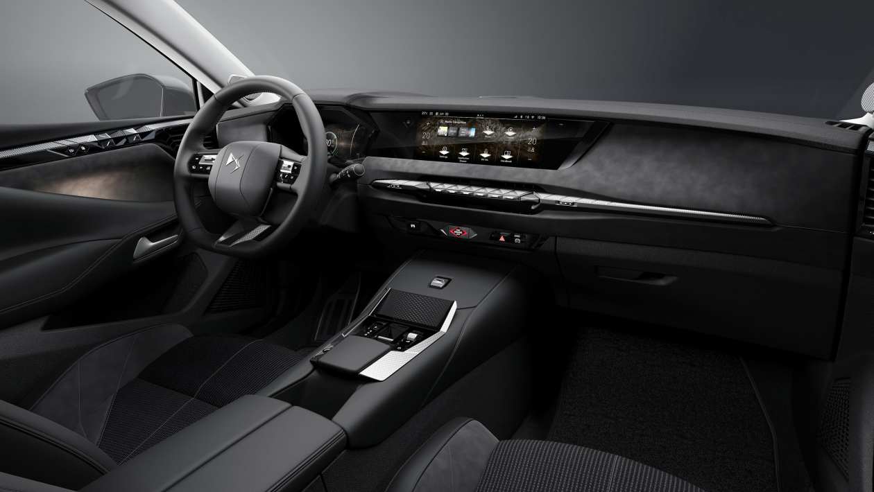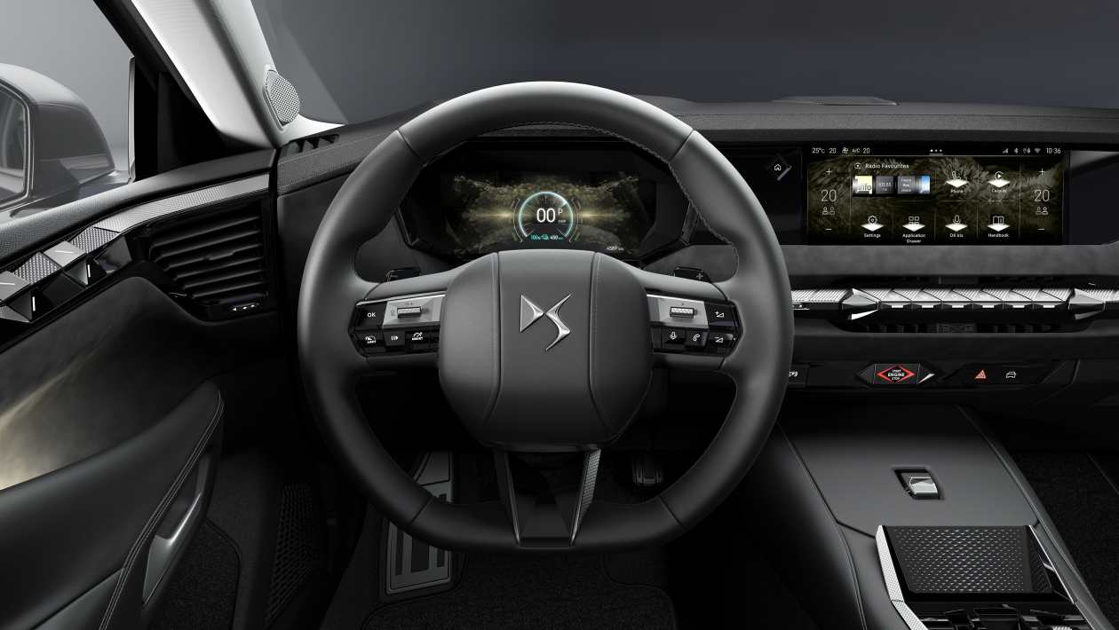 Внутри DS сохраняется сложный дизайн, но в дополнение к существующему 10-дюймовому сенсорному экрану включает более крупный 10-дюймовый дисплей для водителя.
