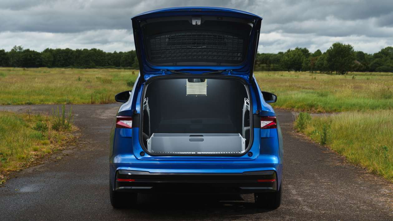 Пространство является одним из ключевых факторов, которые делают Enyaq (некоторые другие Skoda) привлекательными, семейными автомобилями. Принимая это в коммерческий мир, Skoda воспользовалась максимальной емкостью багажника обычного Enyaq SUV 1,710 литров, чтобы создать довольно пещерное пространство за надлежащей металлической перегородкой. В грузовой зоне вы найдете высокопрочный, легкий пластиковый материал, облицовающий пол и клетку, сидящую внутри заднего окна.