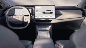 В салоне также сильно повлияли существующие модели Volvo, с успокаивающим скандинавским ощущением благодаря использованию светлой кожи и тканей.