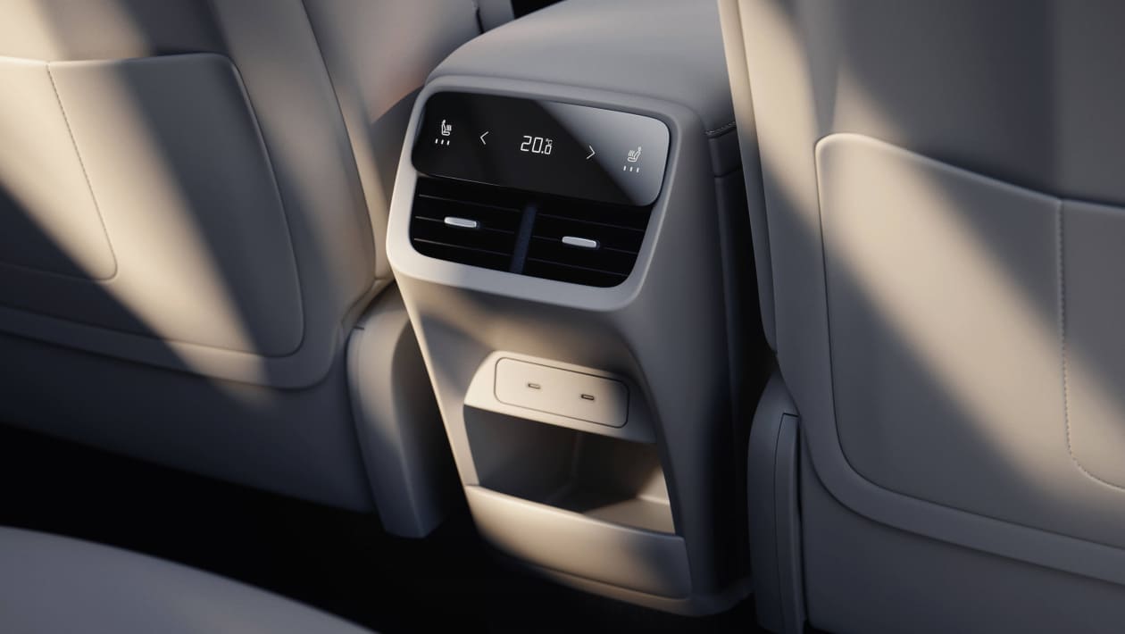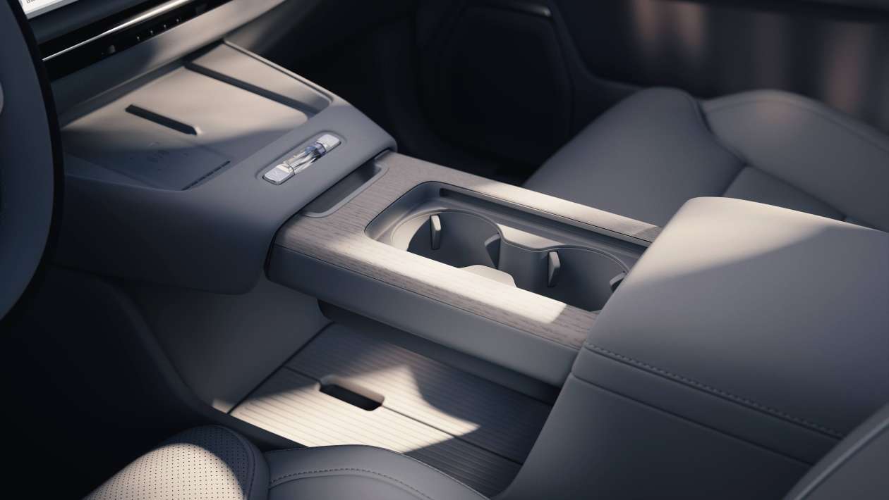 В салоне также сильно повлияли существующие модели Volvo, с успокаивающим скандинавским ощущением благодаря использованию светлой кожи и тканей.