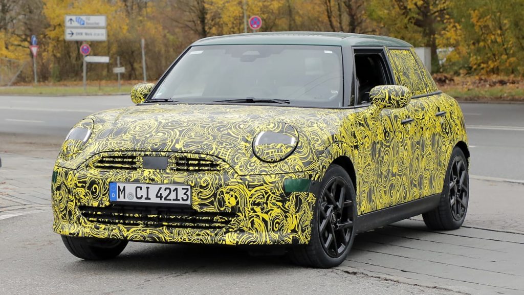 Что касается этих новых шпионских снимков, мы видим, что камуфляж решетки был уменьшен, открывая дизайн решетки, которого нет на EV (по очевидным причинам охлаждения). Передняя часть по-прежнему напоминает дизайн Фрэнка Стивенсона в ретро-стиле первого BMW MINI начала 2000-х годов с более тонкой верхней решеткой, которая синхронизируется с контуром нижней решетки.