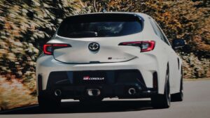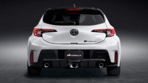 Ключевые изменения по сравнению с обычной Corolla включают в себя трехцилиндровый 1,6-литровый двигатель с турбонаддувом мощностью 296 л.с. и крутящим моментом 370 Нм, привод на все четыре колеса и систему вектора крутящего момента — все из которых в некотором смысле разделены с GR Yaris. На некоторых рынках в этом году Toyota также выпускает изменения в GR Corolla с пересмотренными компонентами рулевого управления и подвески для выбора шестиступенчатой ручной или восьмиступенчатой автоматической трансмиссии.