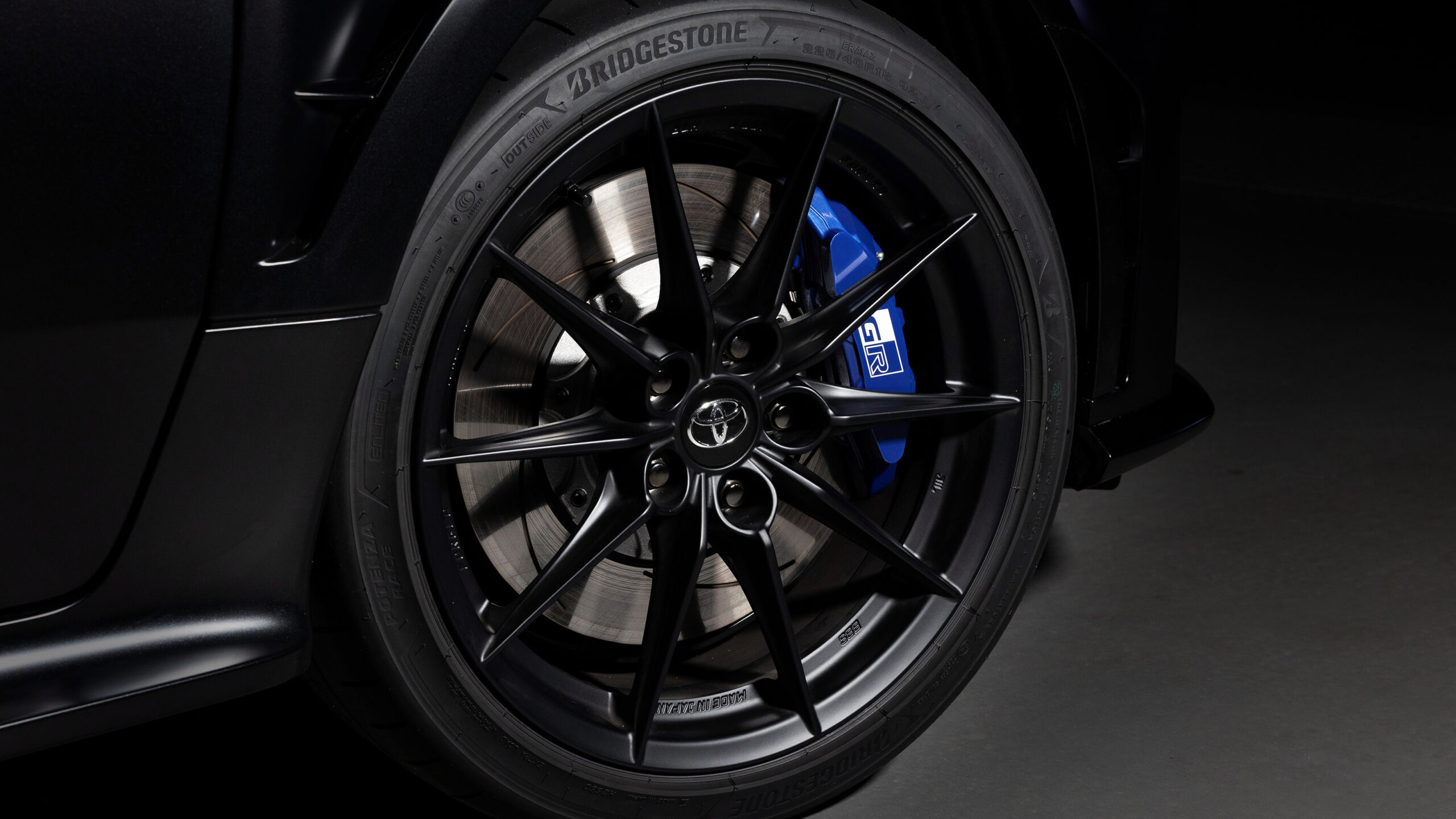 Итак, что нового в Toyota GR Yaris Sébastien Ogier 9x World Champion Edition? Ну, он получает пакет Aero Performance GR Yaris, который был запущен в 2025 году. Это означает новое, регулируемое заднее крыло, шапку капота, спойлер для губ, вентиляционные отверстия колесных арок и даже крышки топливных баков для обеспечения более плавного потока воздуха под полом. Специальное издание GR Yaris также поставляется в новой матовой краске «Black Gravite» с синими тормозными калибрами и триколором внутри решетки.