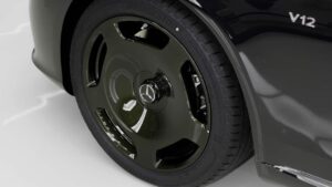 Но, это индивидуальные элементы дизайна из программы Manufaktur Mercedes-Maybach, которые отличают этот автомобиль. Двухцветная краска в оливковом металлическом и обсидиановом черном цветах занимает до 10 рабочих дней для нанесения, что в два раза больше, чем стандартная подпись краски Maybach.