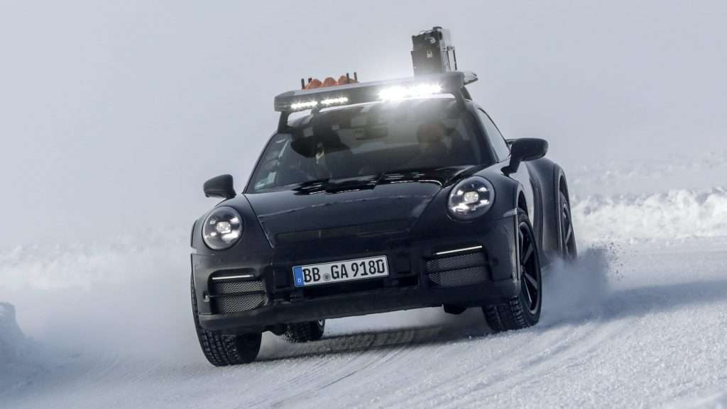 Первые официальные изображения автомобиля раскрывают немного больше, чем мы уже видели на шпионских снимках. Кузов 911-го поколения 992 получает только легкие модификации, чтобы вместить новые большие колеса, обутые во вседорожные шины, и дополнительная высота дорожного просвета также очень очевидна.