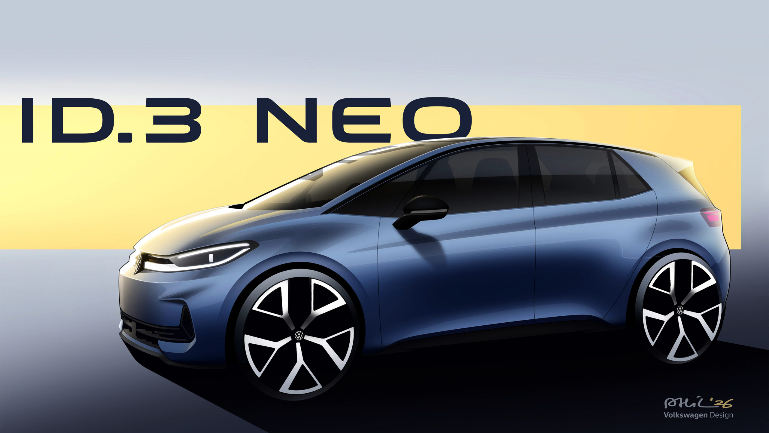 Долгожданный значок ID. Golf будет зарезервирован для модели следующего поколения, которая должна выйти до конца десятилетия, но эти изменения в середине срока службы ID.3 настолько существенны, что VW посчитала целесообразным добавить суффикс «Neo» к 2026 году.