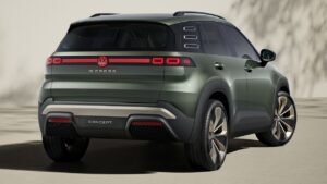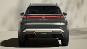 Чистый, простой дизайн задней части является усовершенствованием того, что мы видели на концепте ID.2all, включая световую панель с освещенным значком VW, квадратные задние фонари 3D-эффекта и горизонтальные огни, которые обернулись по бокам.